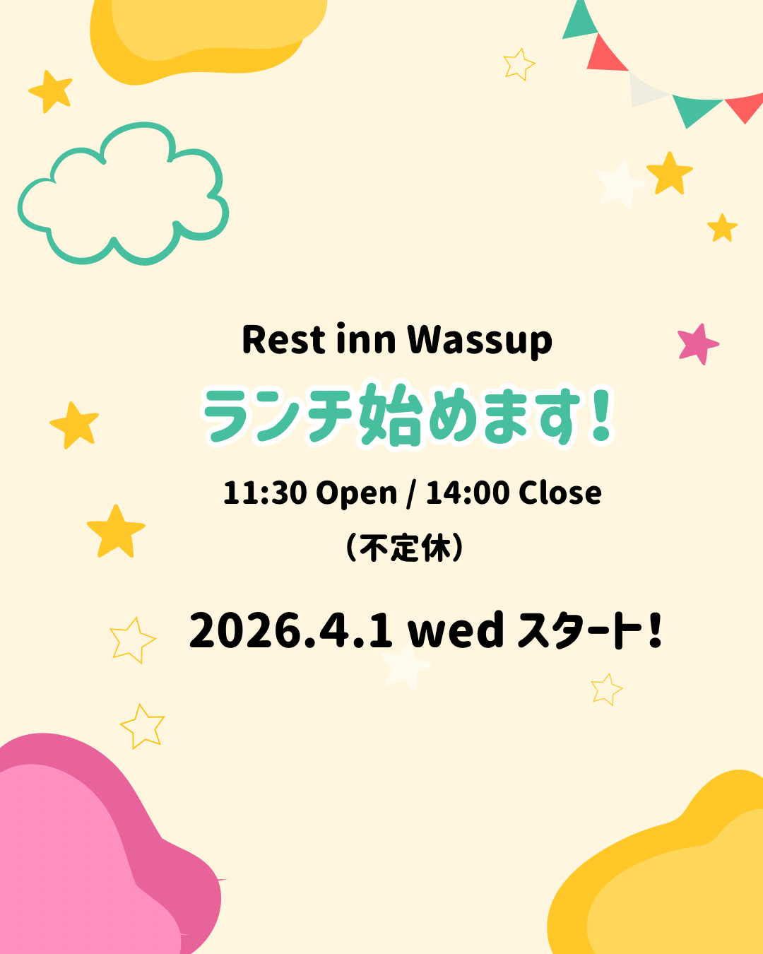 今まで夜しか営業していなかったWassupですが、明日の4月1日(水)よりランチを始めます!