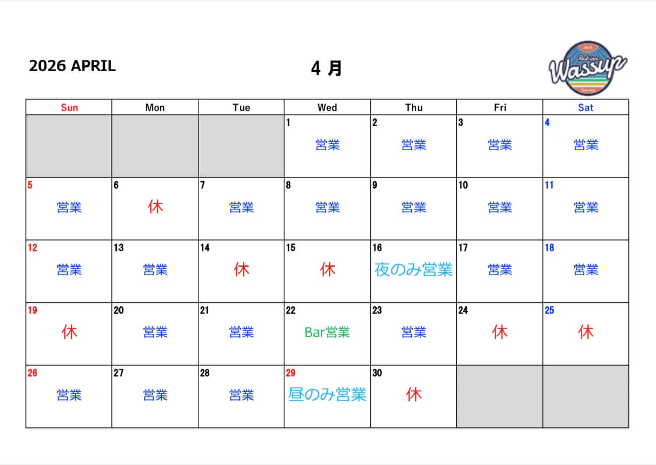 4月の営業カレンダーの公開です。